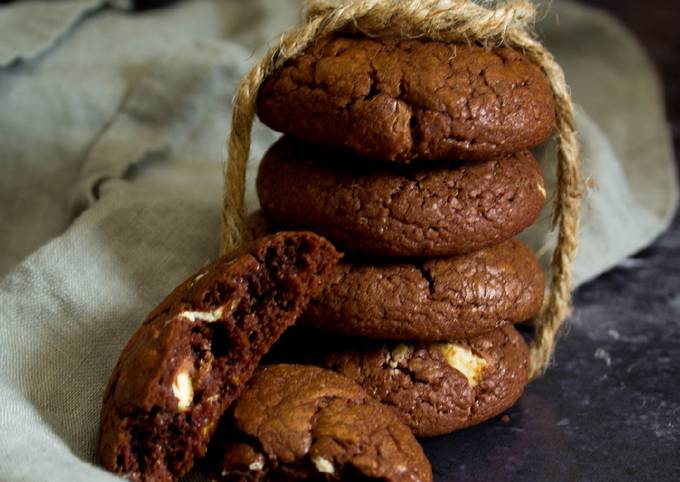 - Mehl, Backkakao, Backpulver, Natron und Salz mischen und zu dem restlichen Teig hinzusieben; vorsichtig verrühren/unterheben..