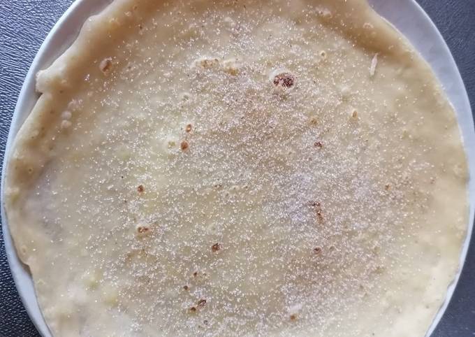- Aus den Zutaten einen Teig herstellen und in einer heißen Pfanne sehr dünn ausbacken. Fertig! Guten Appetit! 😋.